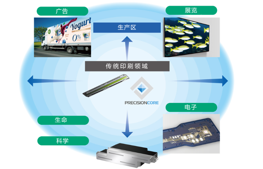 PrecisionCore技術將噴墨打印從簡單的紙上打印擴展到了更廣泛的領域,甚至包括電子和生物技術領域。通過開放式創新,我們正在與擁有各種服務和想法的合作夥伴合作推動新市場的構建。
