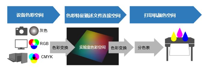 呈現在相機或PC顯示器等設備中的色彩被打印輸出之前將需要經曆一個轉換過程,在此過程中,輸入設備色彩空間通過色彩特征描述文件連接空間轉換為打印機顏色空間(打印機可以再現的色彩)。在打印機顏色空間中,通過愛普生多年來積累的噴墨技術,在色彩對照表(LUT)中為每台打印機定義不同介質類型適合的墨水顏色和墨量。