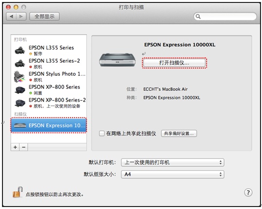 第八步: 以上掃描方式是通過Mac OS X內置的掃描驅動進行掃描,如果用戶需要 Epson Scan 進行掃描,建議安裝 Epson Scan 程序後,打開“應用程序”—“Epson Scan”或“應用程序”—“Epson Software”—“Epson Scan”進行掃描。